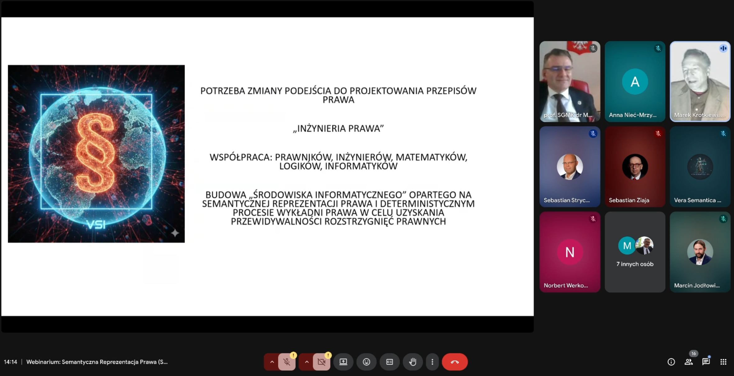 Nasze pierwsze webinarium przedstawiało koncepcję Semantycznej Reprezentacji Prawa (SRP), deterministycznego podejścia do wykładni prawa rozwijanego na styku prawa i sztucznej inteligencji. Wydarzenie podkreślało społeczne konsekwencje nieprzewidywalności prawa, ograniczenia współczesnych systemów AI oraz potrzebę wprowadzenia metodologii o charakterze inżynierii prawa. Prelegenci omówili motywacje stojące za SRP, rolę ontologii prawniczych oraz przyszłość AI w obszarze prawa.